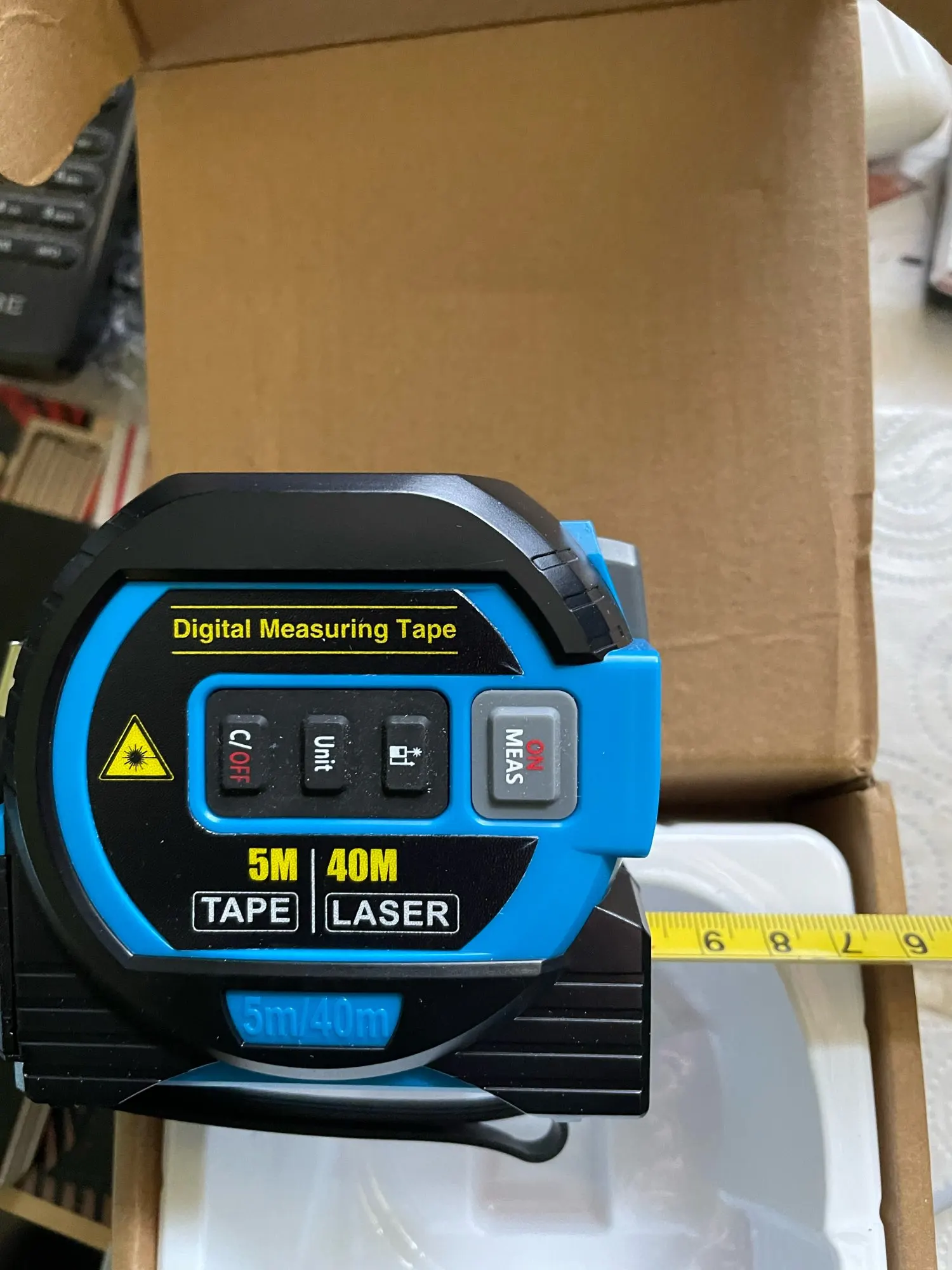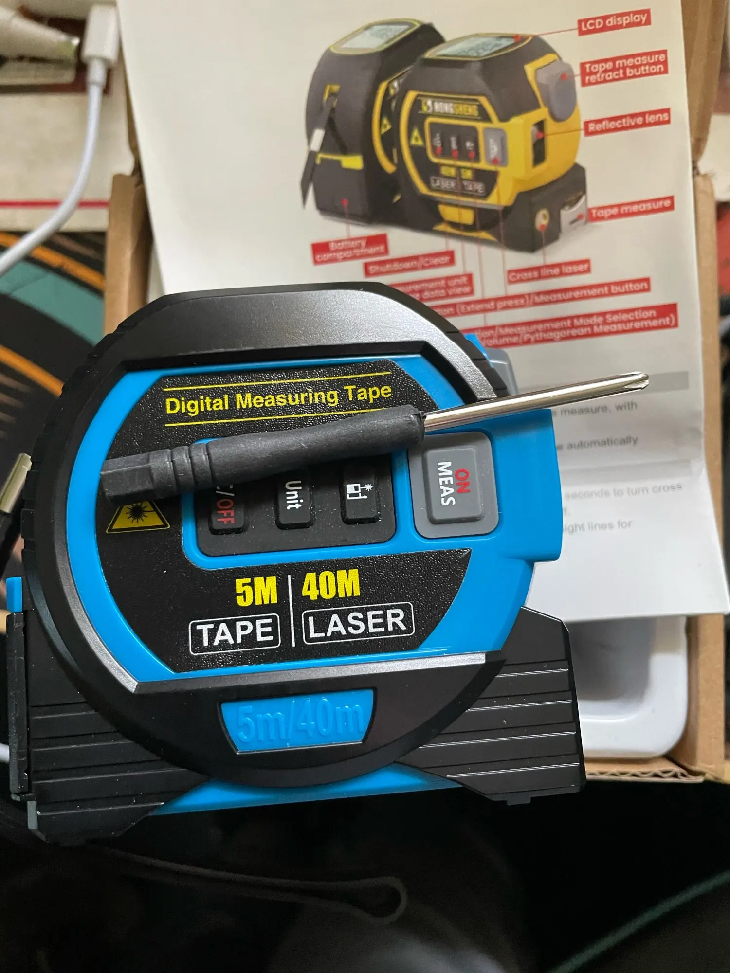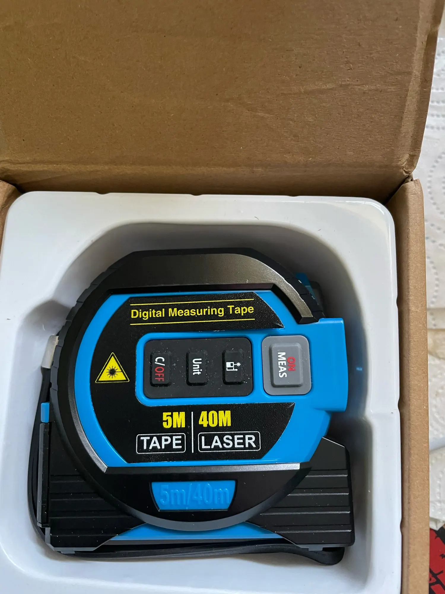 Introducing the Measure Digital Measuring Laser Tape: A fusion of traditional measuring techniques with advanced laser technology. This tool is essential for anyone needing precise measurements in construction, interior design, or DIY projects. It combines a 5m stainless steel tape ruler with a high-accuracy laser rangefinder, providing versatility and reliability in one compact device.
