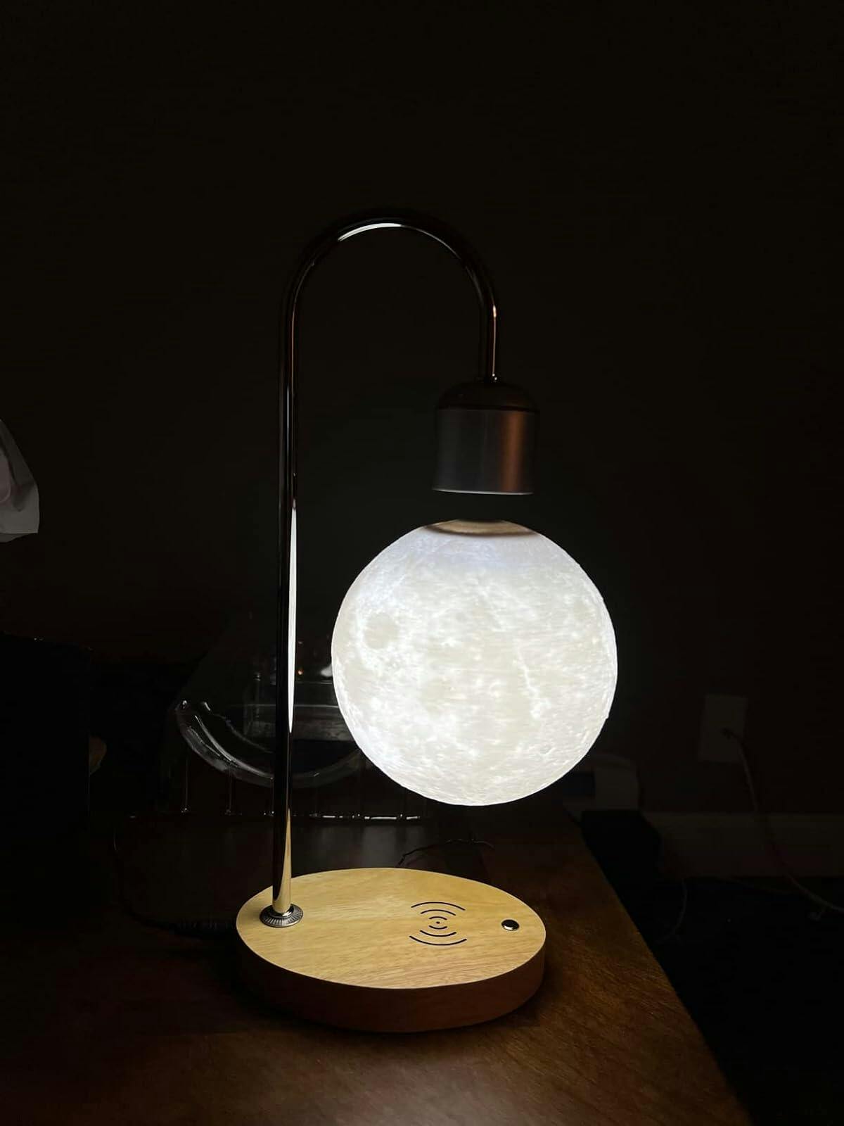 Transform your living space with the Creative Magnetic Levitation Moon Lamp. Featuring a realistic lunar surface and LED lighting, this lamp levitates gracefully, creating a captivating visual effect. Its built-in wireless charging pad adds a modern touch, allowing you to charge your devices effortlessly. Ideal for bedrooms, living rooms, or offices, this innovative lamp enhances both aesthetics and functionality in your home.